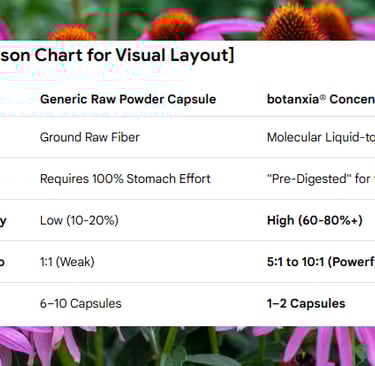 Most herbal supplements on the market are simply "ground-up plants" put into a capsule. To the human digestive system, these are essentially micro-sawdust.